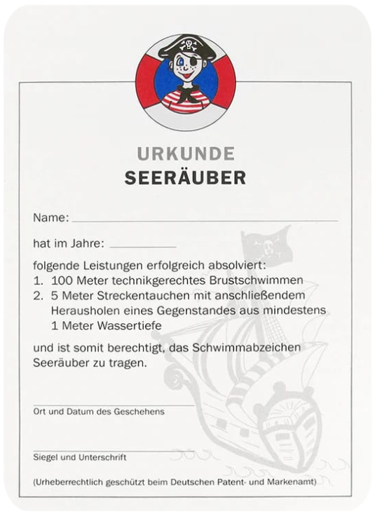 Für alle, die das Seepferdchen verdient haben, aber noch ein wenig Übung wollen, gibt es seit einigen Jahren den Seeräuber.